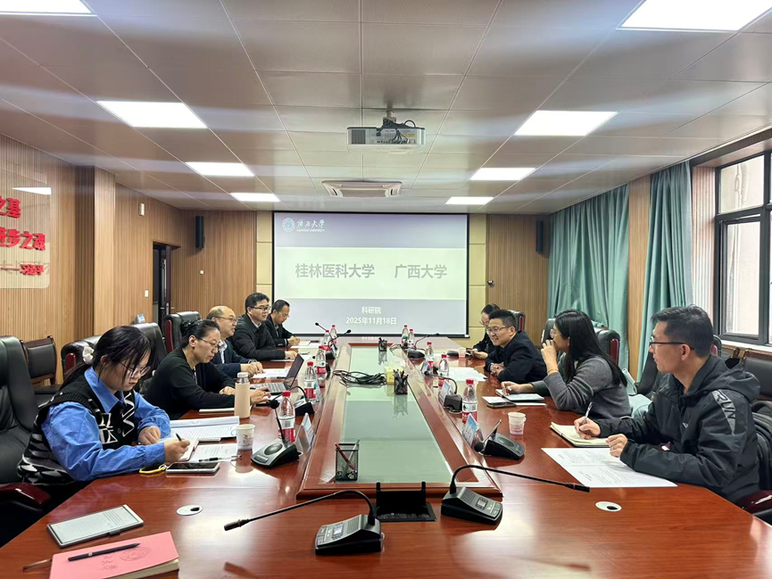 2025年11月18日下午,桂林医科大学科学技术研究院常务副院长马礼兵一行到校调研。广西大学科研院院长陈正主持座谈会。